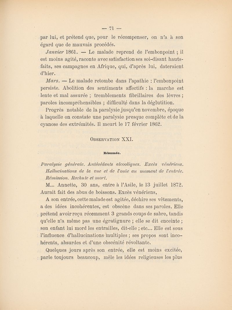 Des hallucinations dans la paralysie générale