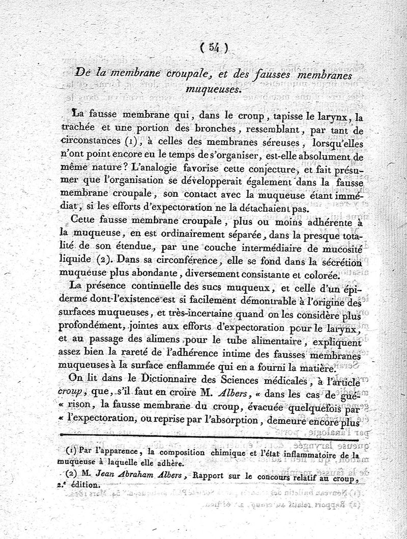 Essai sur les fausses membranes