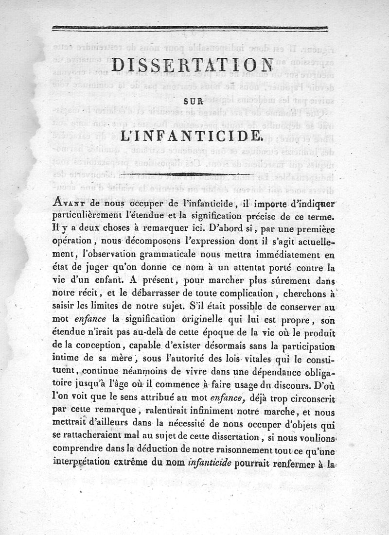 Dissertation sur l'infanticide