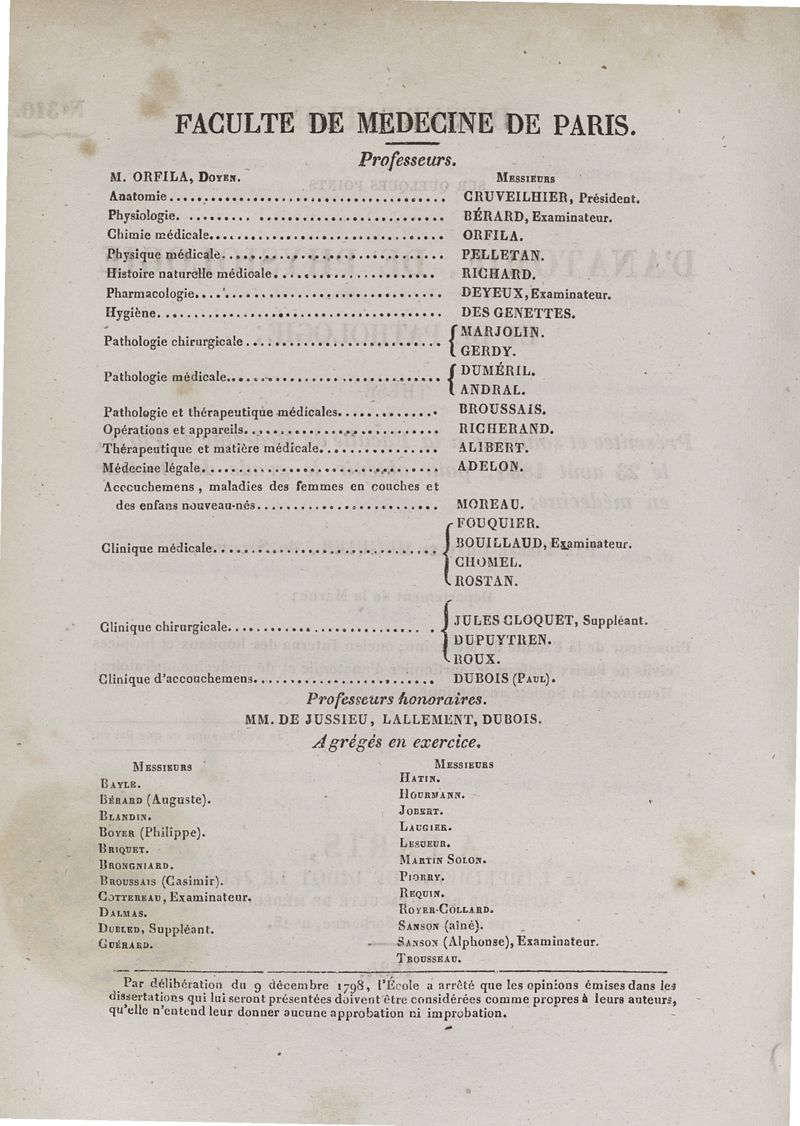 Thèse de médecine de Paris 1834 n°310,