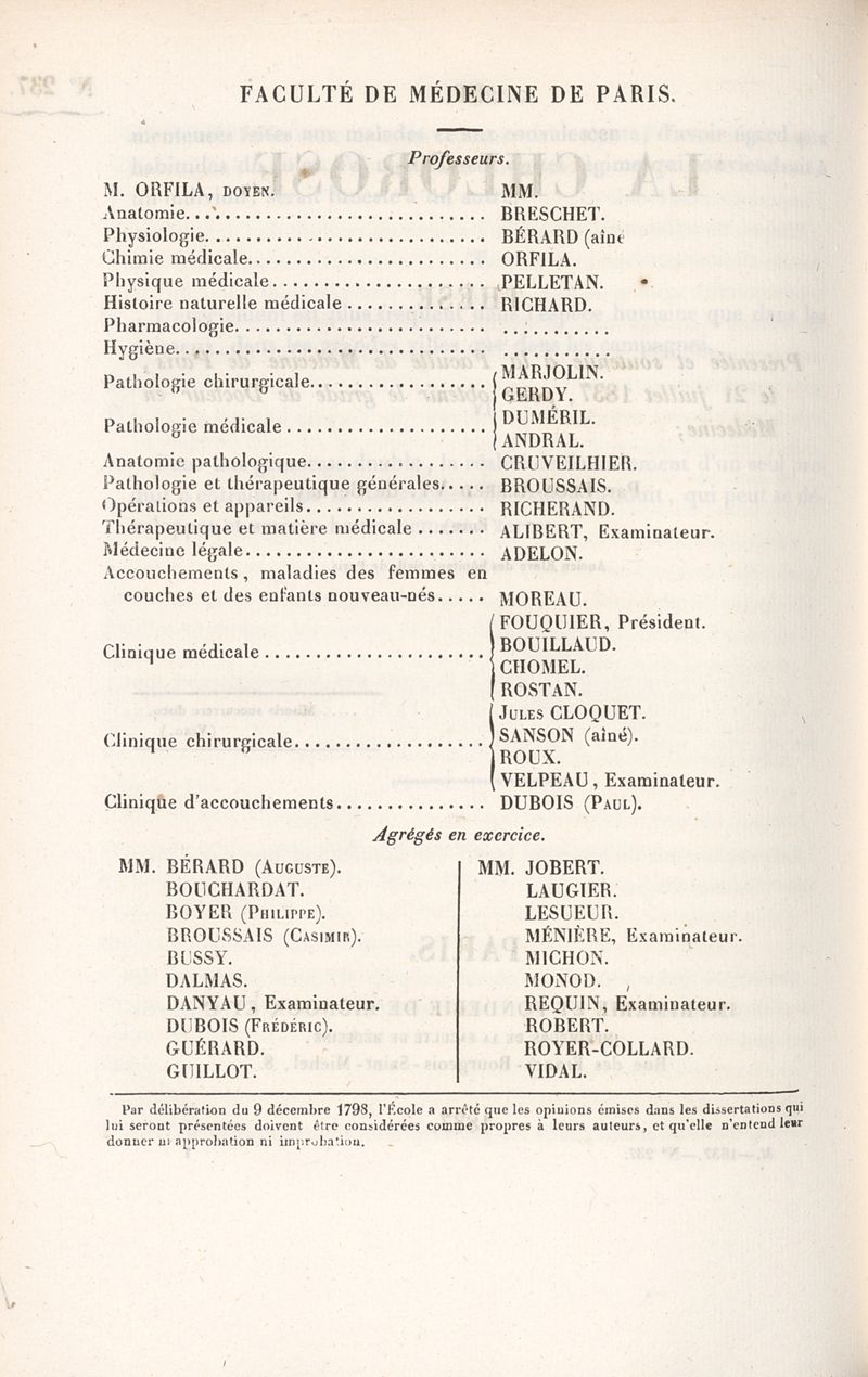Thèse de médecine de Paris, n°237, 1837.