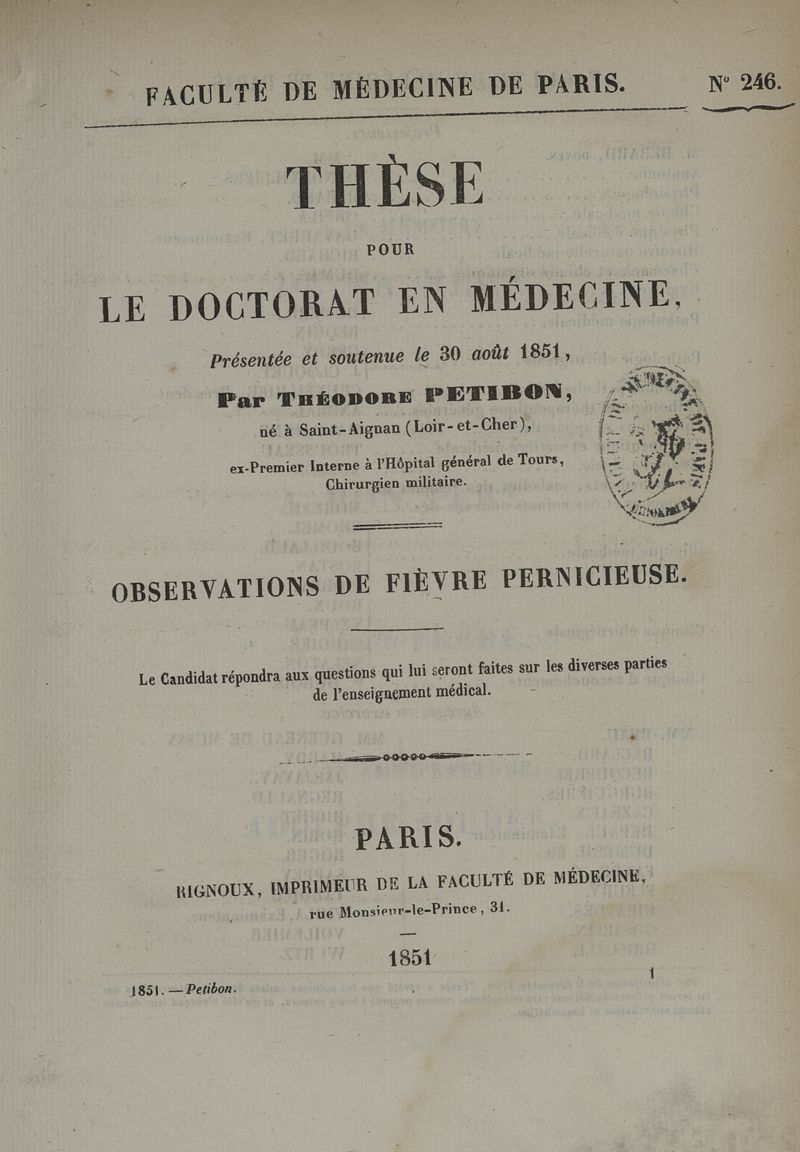 Paris : Rignoux, Imprimeur de la Faculté de Médecine