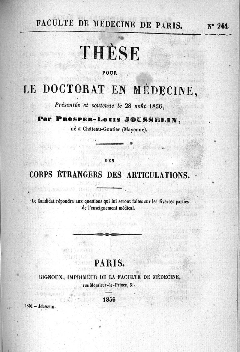 Thèse de médecine, Paris 1856,