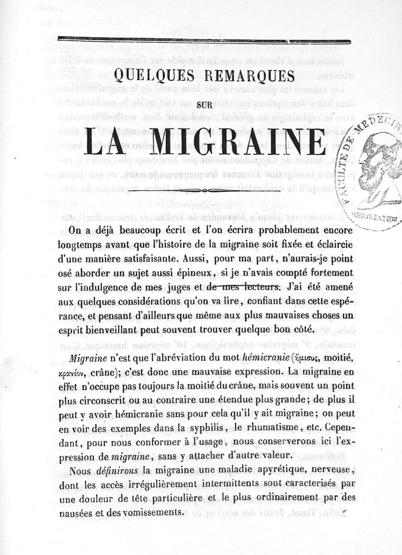 Quelques remarques sur la migraine