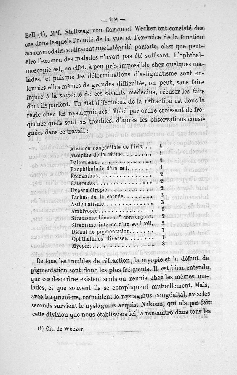 Étude sur le nystagmus