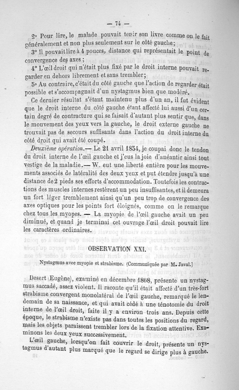 Étude sur le nystagmus