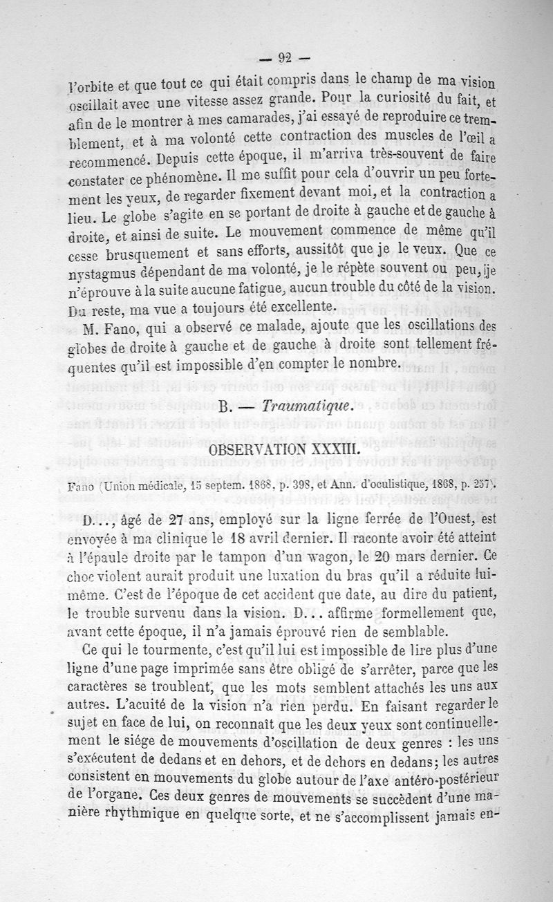 Étude sur le nystagmus