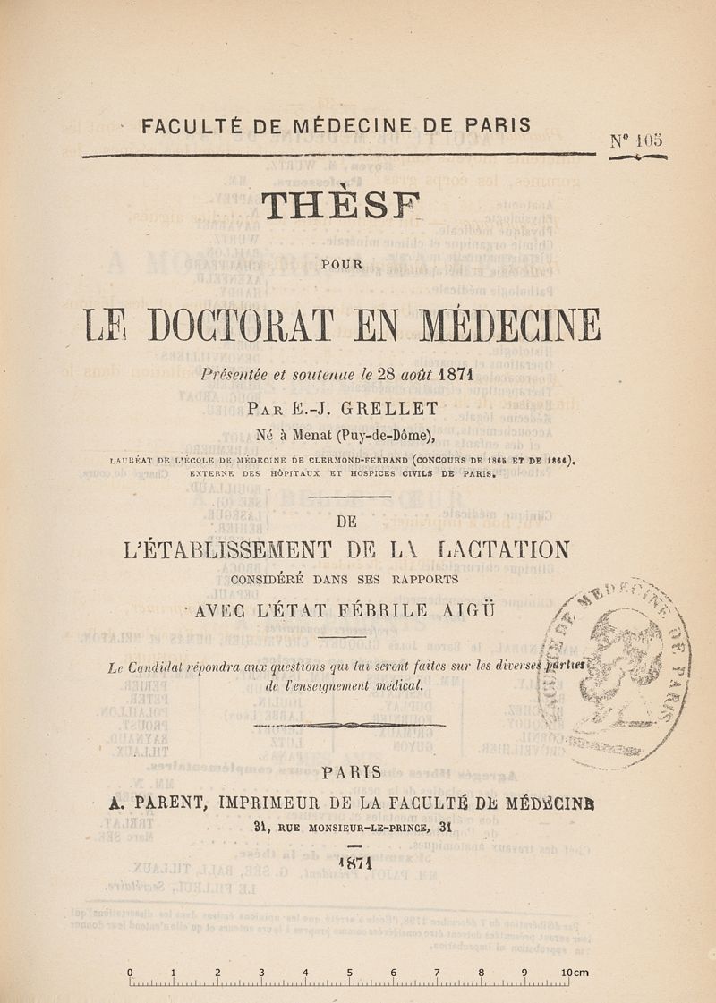 Paris : A. Parent, imprimeur de la Faculté de Médecine