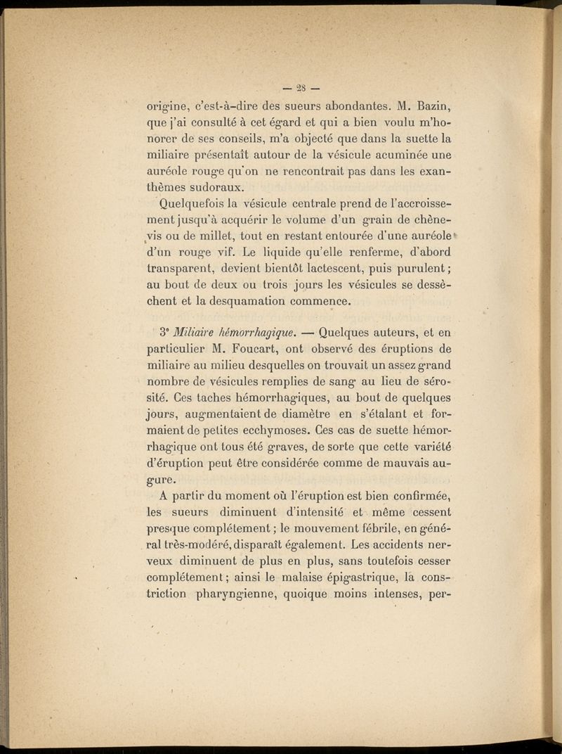 Etude sur la suette miliaire