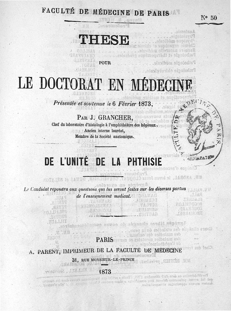 thèse de médecine de Paris n° 50, 1873.