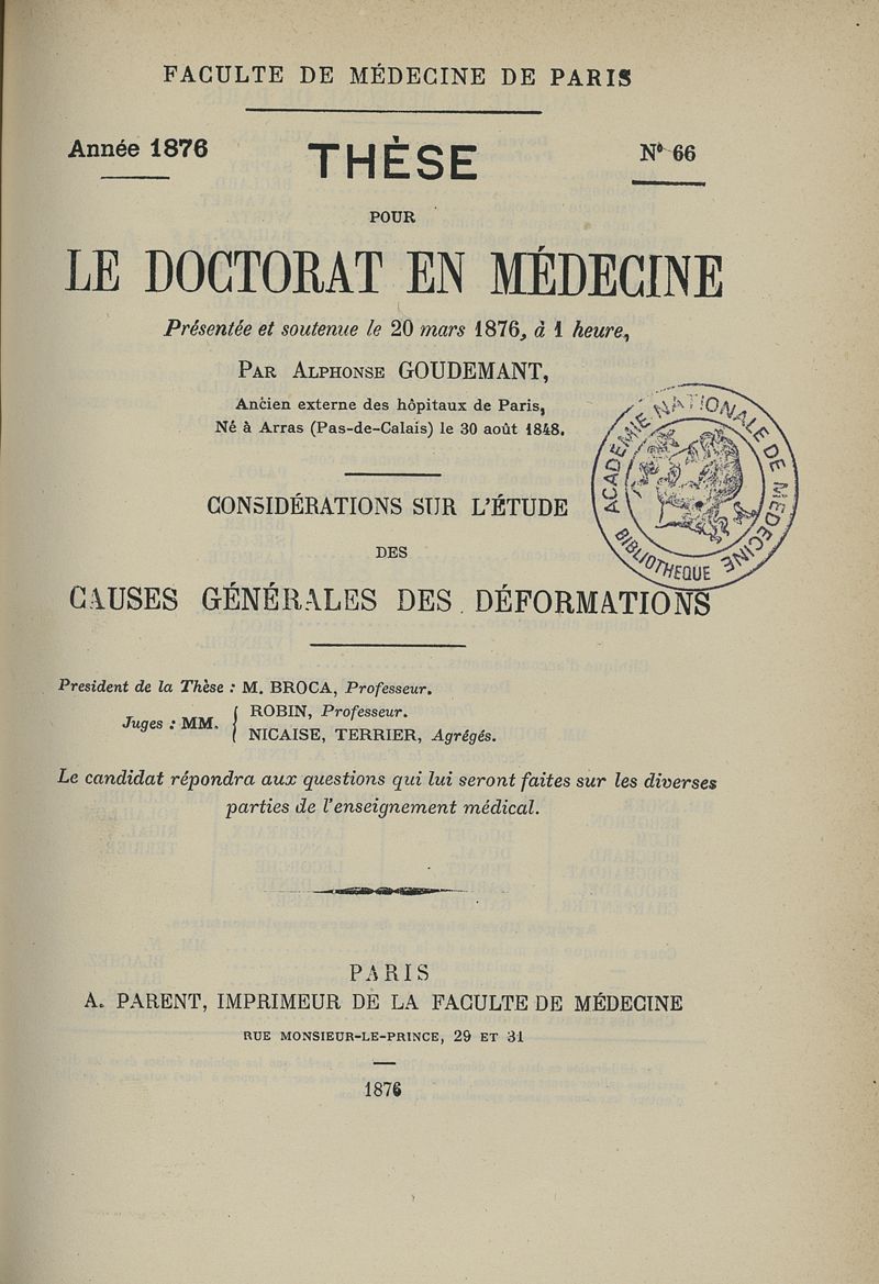 Thèse de médecine de Paris 1876 n° 66,