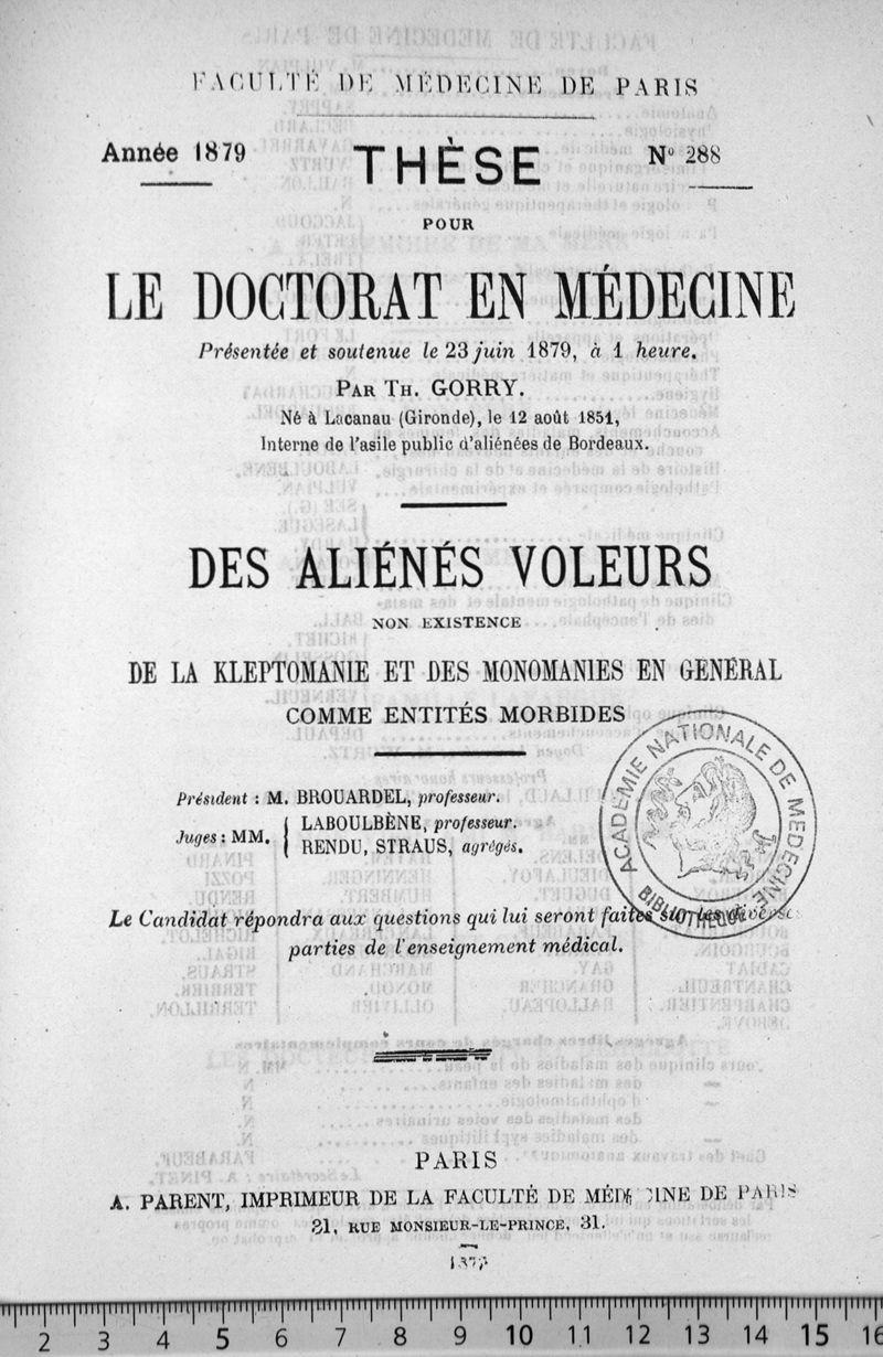 Thèse de médecine de Paris 1879, n°297,