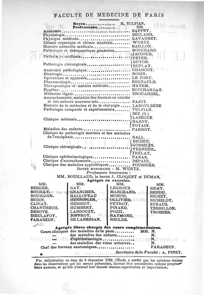 thèse de médecine de Paris n° 185, 1881.