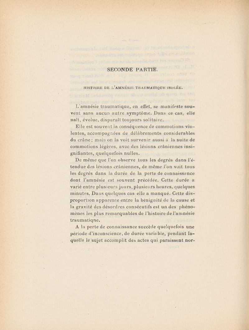 Essai sur l'amnésie traumatique isolée