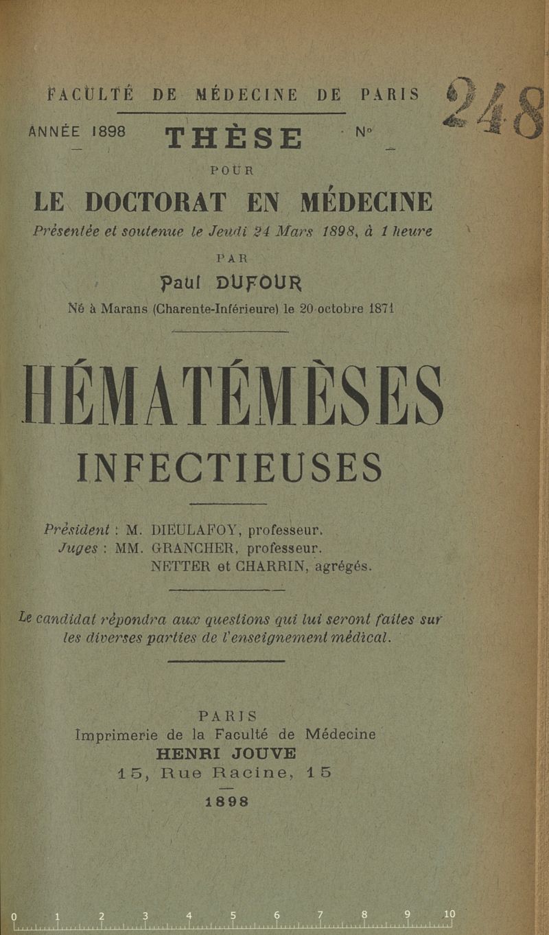 Thèse de médecine de Paris n° 248, 1898.