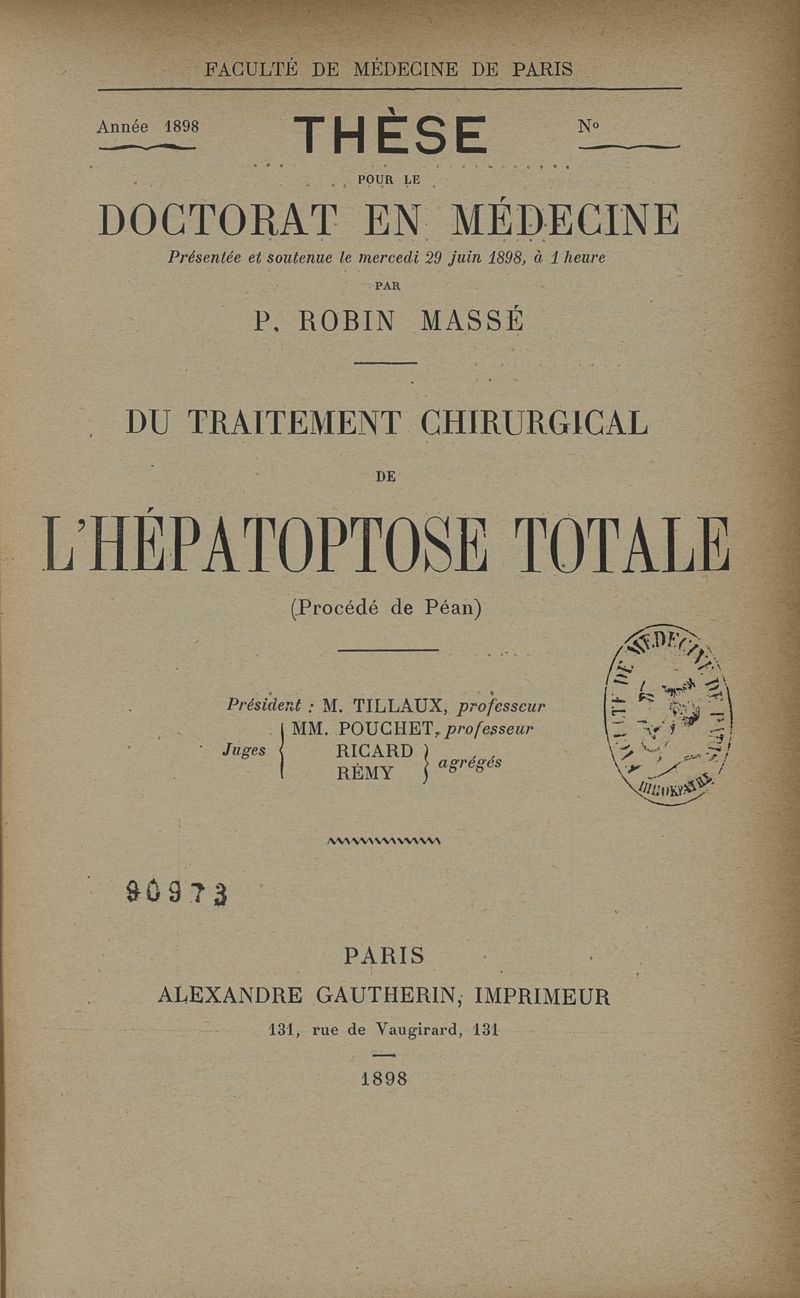 Thèse de médecine de la faculté de Paris n°439,