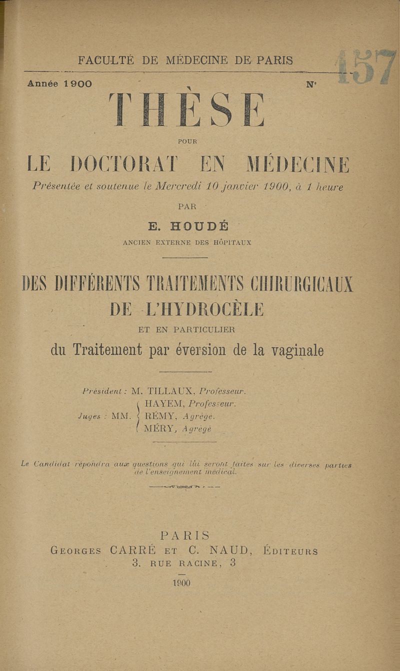 Thèse de médecine de Paris n° 157,
