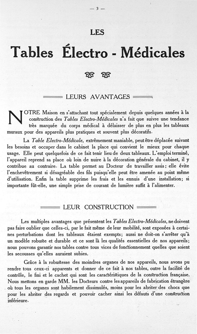 Tableaux pour endoscopie, cautérisation, air chaud, galvanisation, faradisation, courant sinusoïdal, courants permanents et rythmés