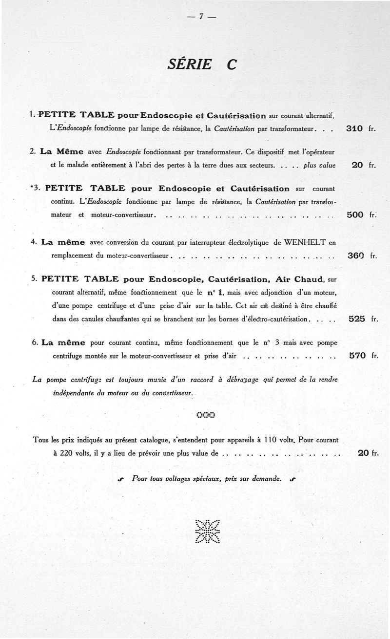 Tableaux pour endoscopie, cautérisation, air chaud, galvanisation, faradisation, courant sinusoïdal, courants permanents et rythmés
