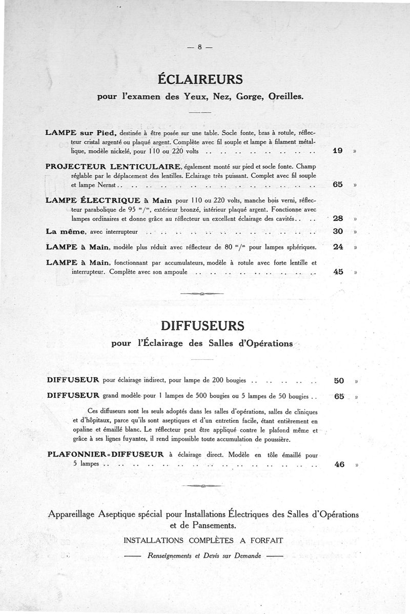 Tableaux pour endoscopie, cautérisation, air chaud, galvanisation, faradisation, courant sinusoïdal, courants permanents et rythmés
