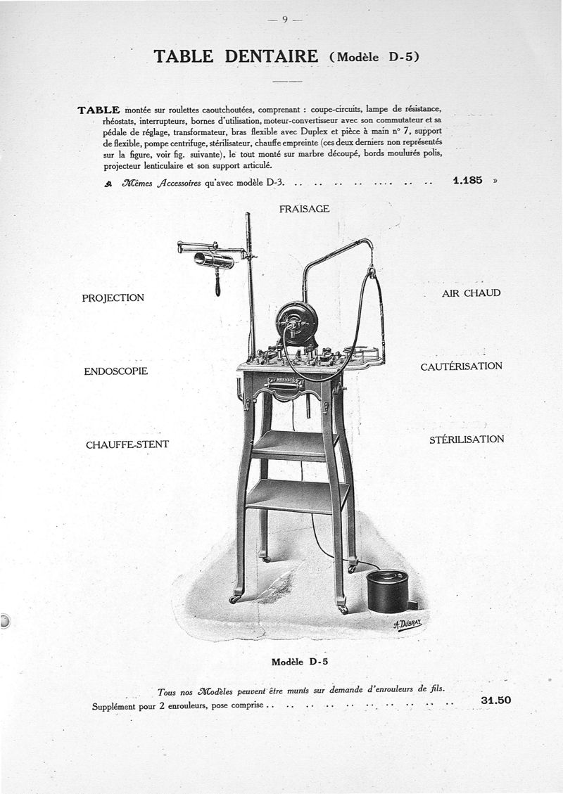 Tableaux pour endoscopie, cautérisation, air chaud, galvanisation, faradisation, courant sinusoïdal, courants permanents et rythmés