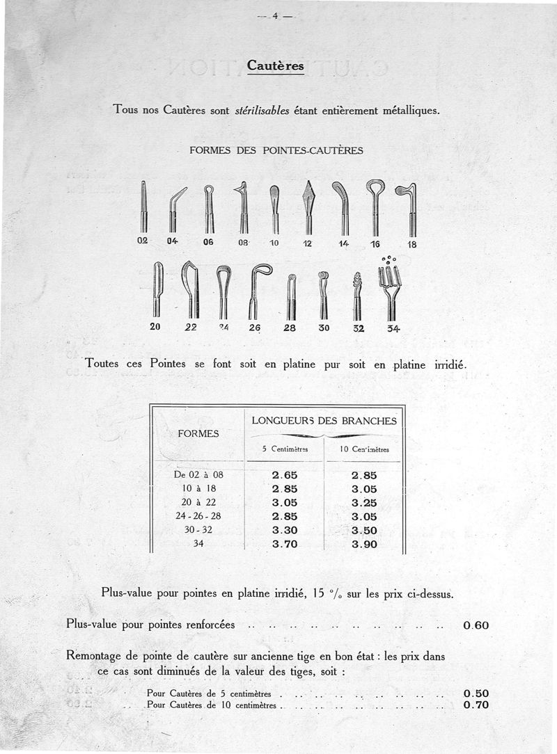 Tableaux pour endoscopie, cautérisation, air chaud, galvanisation, faradisation, courant sinusoïdal, courants permanents et rythmés