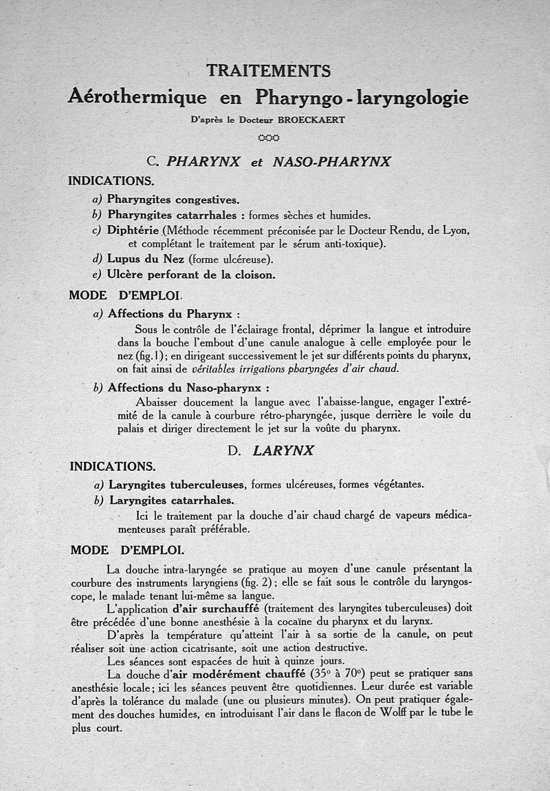Tableaux pour endoscopie, cautérisation, air chaud, galvanisation, faradisation, courant sinusoïdal, courants permanents et rythmés