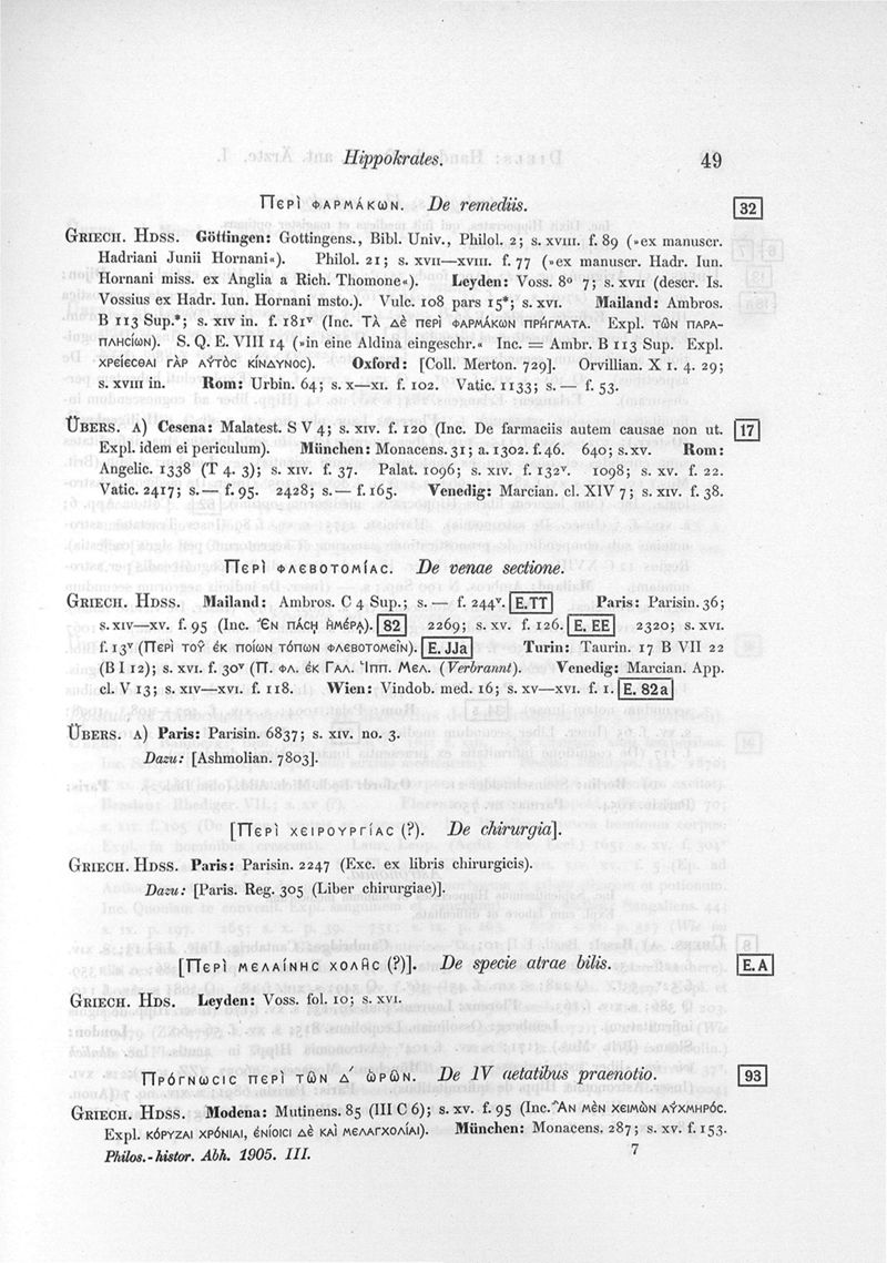 Die Handschriften der antiken Ärzte, I. Teil, Hippokrates und Galenos