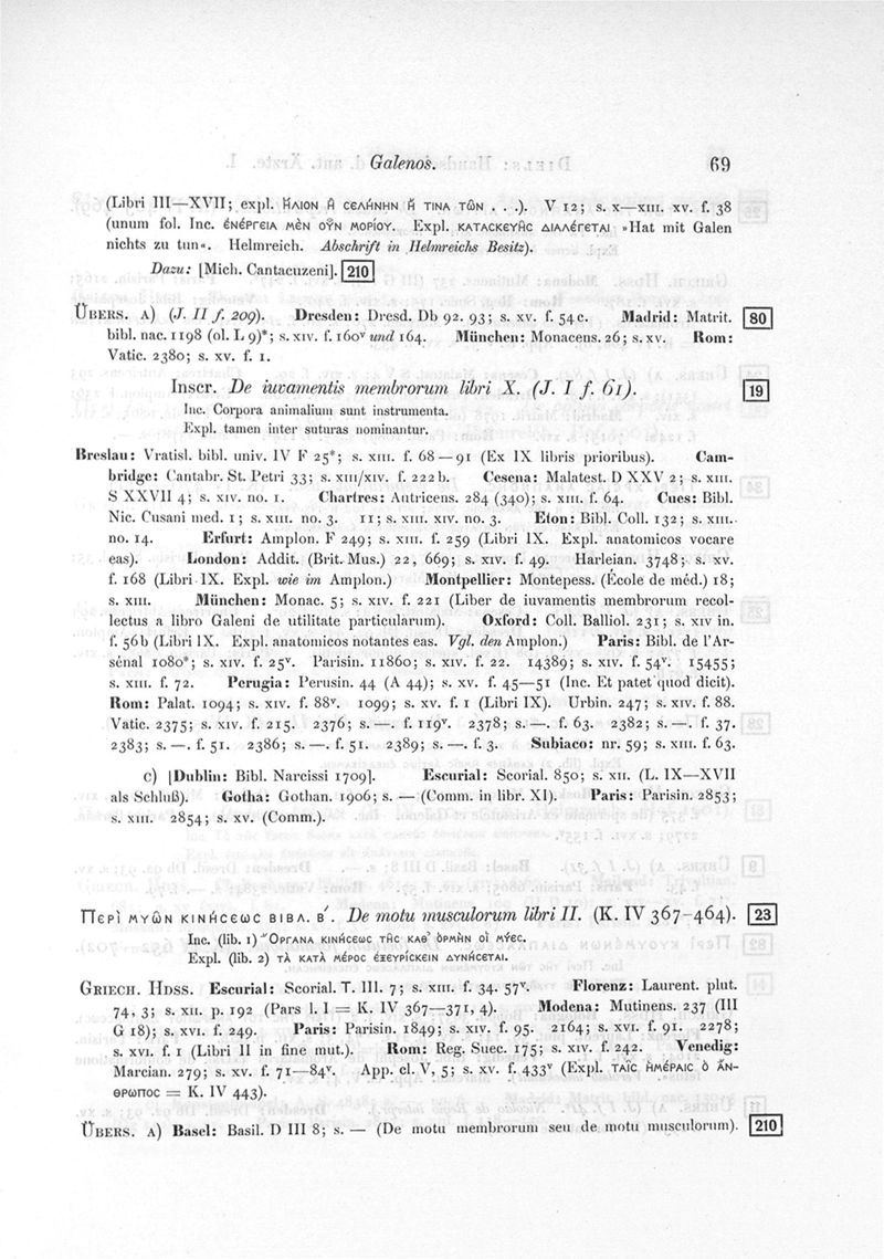 Die Handschriften der antiken Ärzte, I. Teil, Hippokrates und Galenos