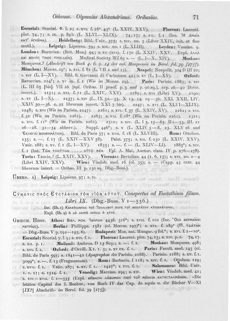Die Handschriften der antiken Ärzte. II. Theil. Die übrigen griechischen Ärzte aufser Hippokrates und Galenos