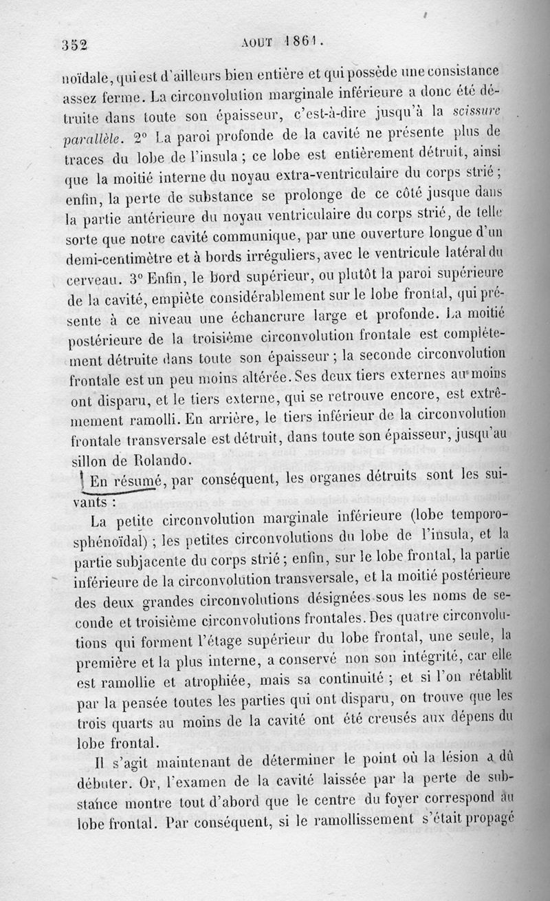 Remarques sur le siège de la faculté du langage articulé, suivie d'une observation d'aphémie (perte de la parole)