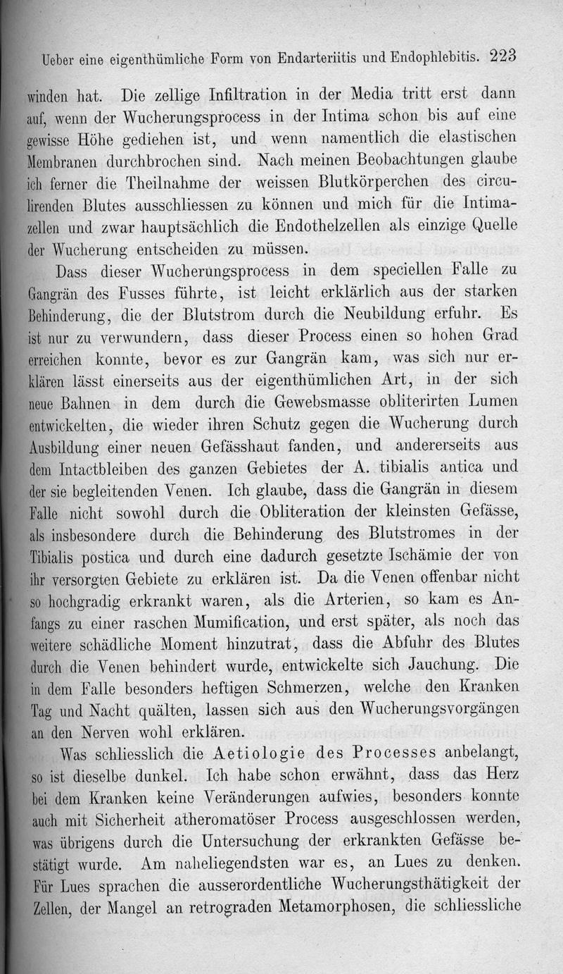 Ueber eine eigenthümliche Form von Endarteriitis und Endophlebitis mit Gangrän des Fusses