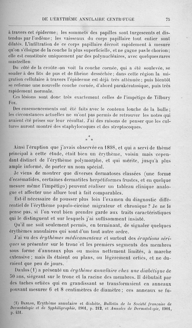 De l'érythème annulaire centrifuge (érythème papulo-circiné migrateur et chronique) et de quelques éruptions analogues