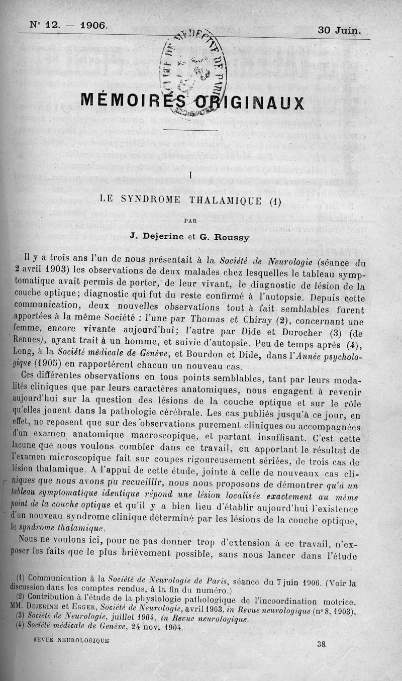In : Revue neurologique (Paris),