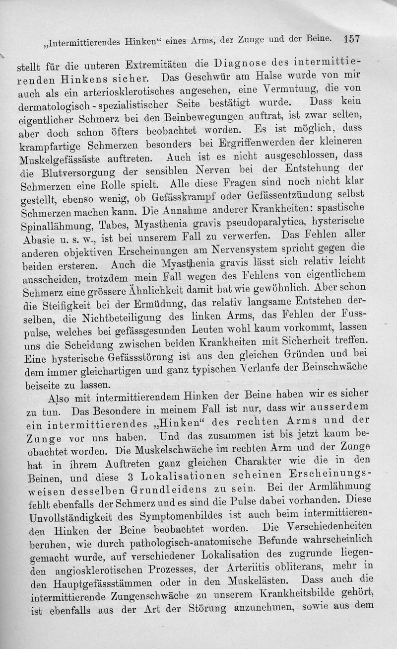 "Intermittierendes Hinken" eines Armes, der Zunge und der Beine (Dyskinesia intermittens angiosclerotica)
