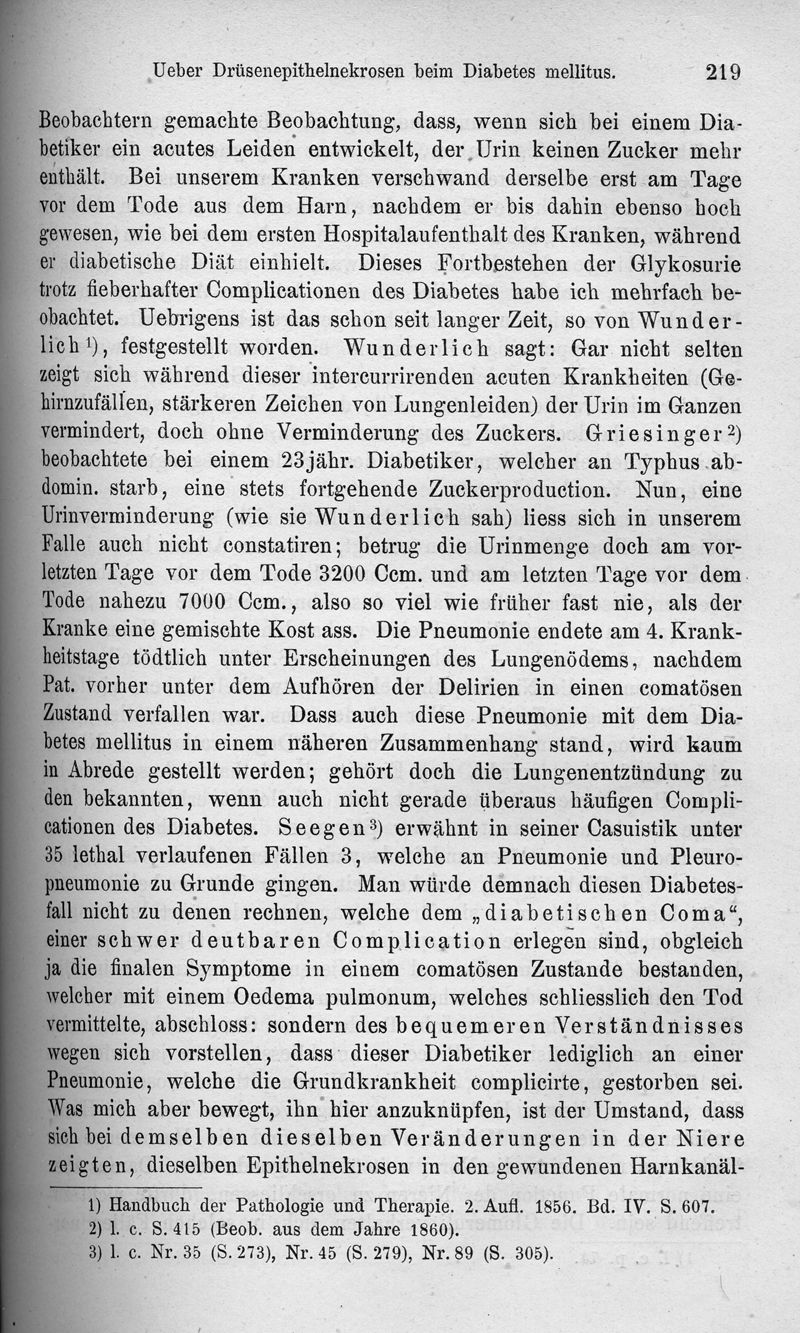 Ueber Drüsenepithelnekrosen beim Diabetes mellitus mit besonderer Berücksichtigung des diabetischen Coma
