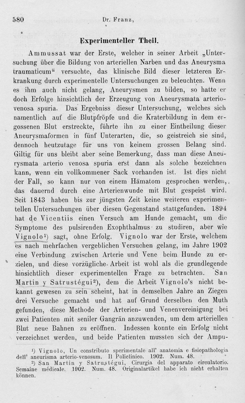 Klinische und experimentelle Beiträge betreffend das Aneurysma arteriovenosum