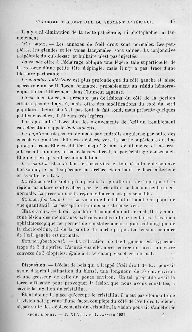 In : Archives d'ophtalmologie (1880), 1931, Vol. 48, pp. 5-27