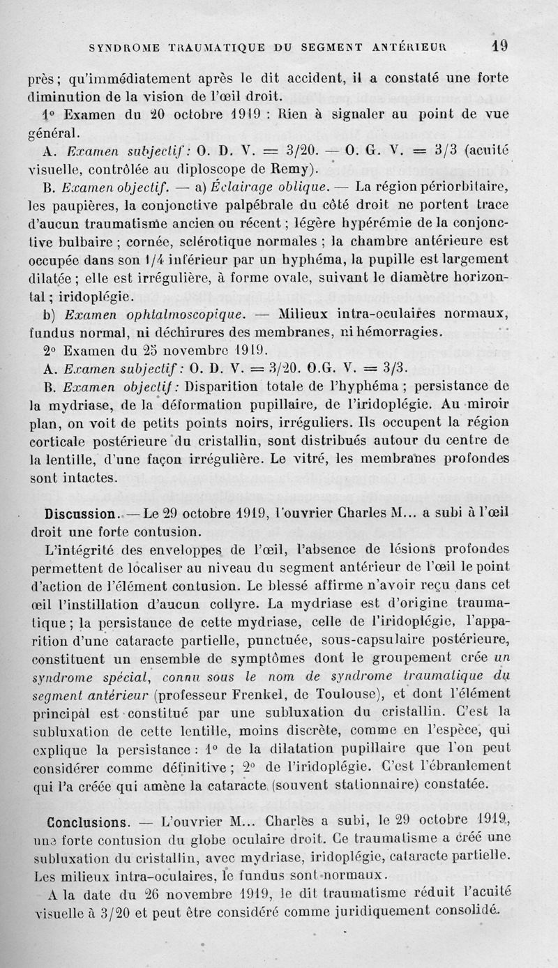 Sur la valeur médico-légale du syndrome traumatique du segment antérieur