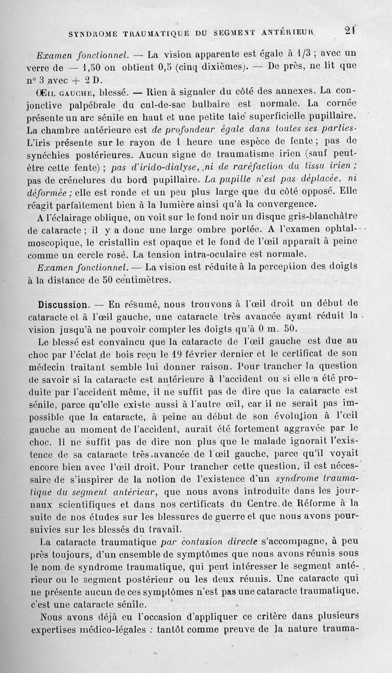 Sur la valeur médico-légale du syndrome traumatique du segment antérieur