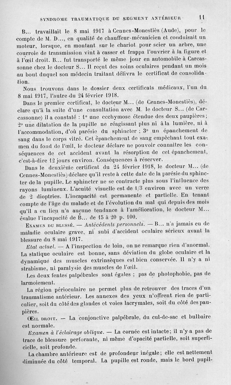 Sur la valeur médico-légale du syndrome traumatique du segment antérieur
