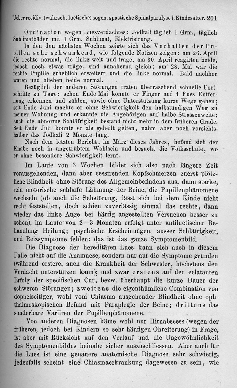 Ueber recidivirende (wahrscheinlich luetische) sogen. spastische Spinalparalyse im Kindesalter