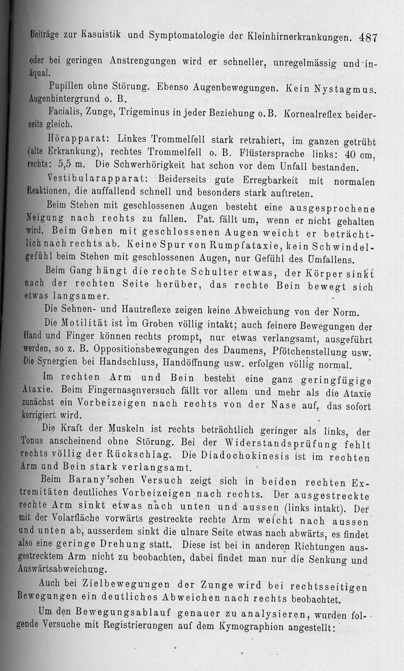 Beiträge zur Kasuistik und Symptomatologie der kleinhirnerkrankungen (im besonderen zu den Störungen der Bewegungen, der Gewichts-, Raum- und Zeitschätzung)