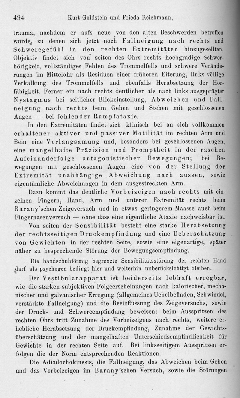 Beiträge zur Kasuistik und Symptomatologie der kleinhirnerkrankungen (im besonderen zu den Störungen der Bewegungen, der Gewichts-, Raum- und Zeitschätzung)