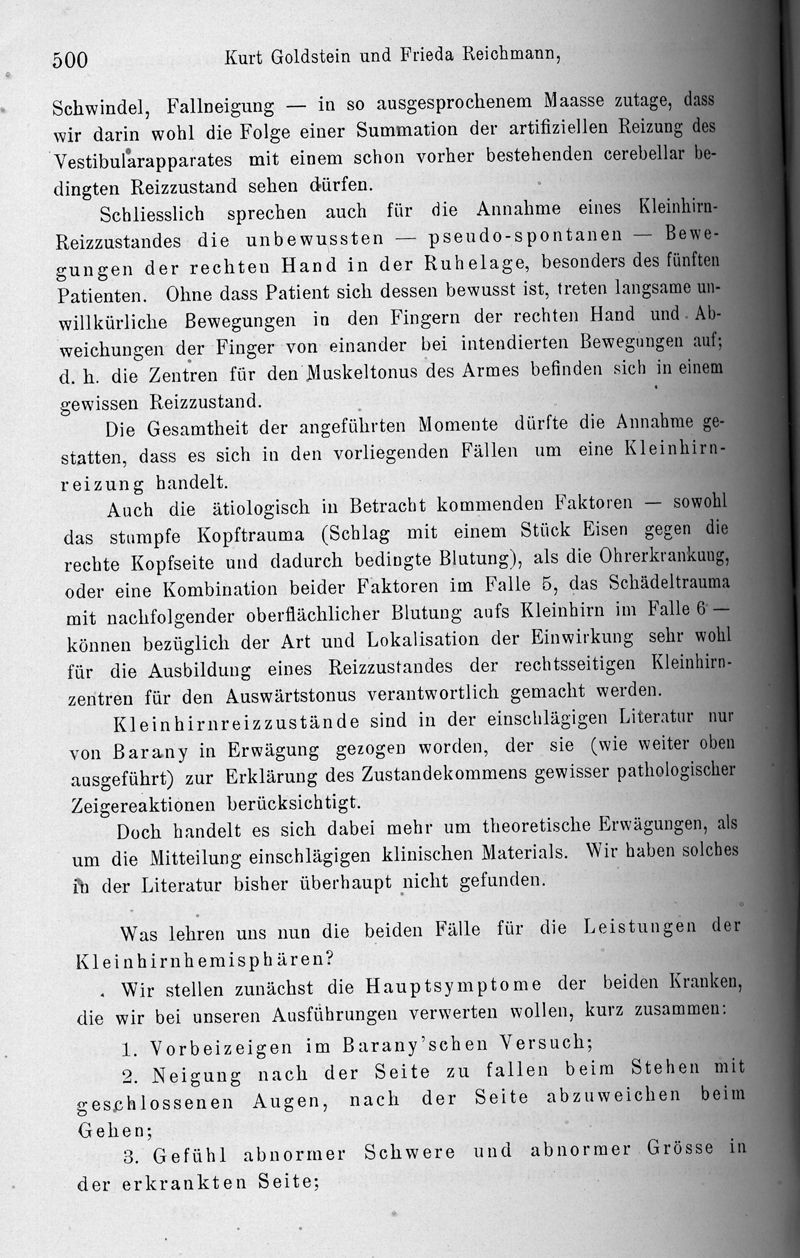 Beiträge zur Kasuistik und Symptomatologie der kleinhirnerkrankungen (im besonderen zu den Störungen der Bewegungen, der Gewichts-, Raum- und Zeitschätzung)
