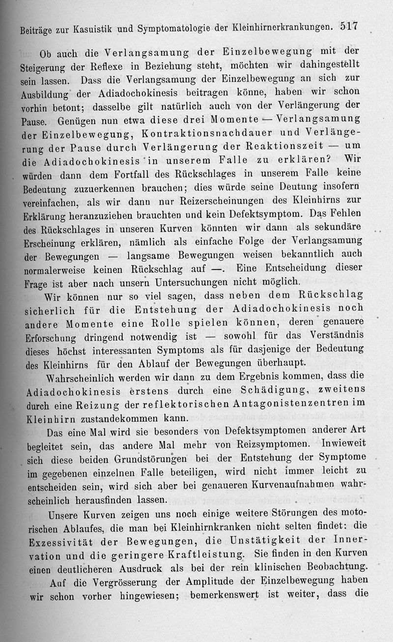 Beiträge zur Kasuistik und Symptomatologie der kleinhirnerkrankungen (im besonderen zu den Störungen der Bewegungen, der Gewichts-, Raum- und Zeitschätzung)