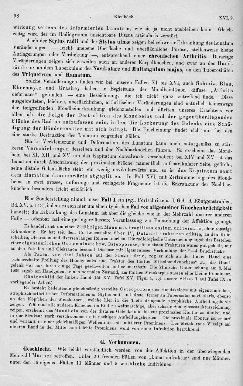 Über traumatische Malazie des Mondbeins und ihre Folgezustände : Entartungsformen und kompressionsfrakturen
