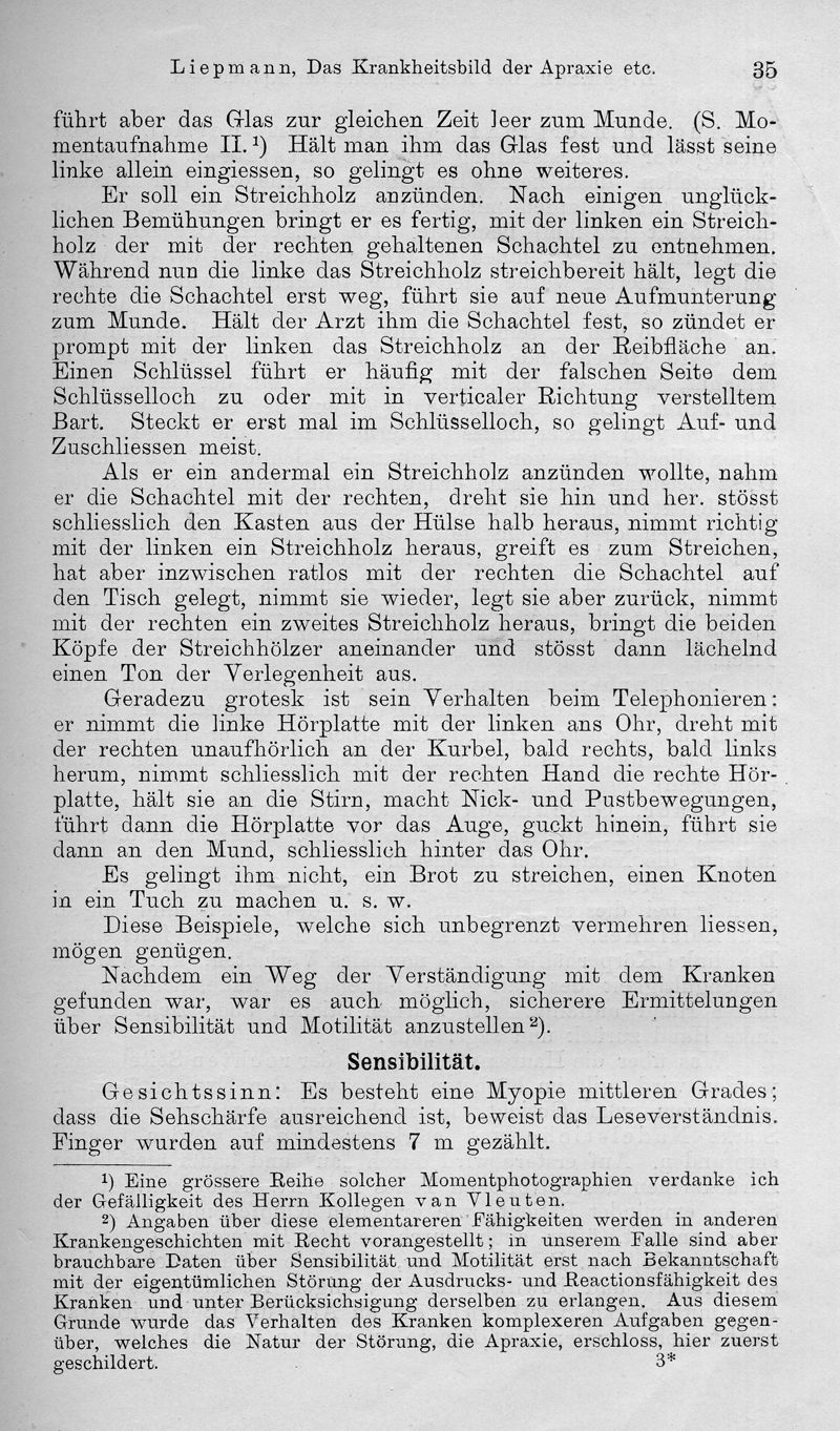 Das Krankheitsbild der Apaxie ("motorischen Asymbolie") auf Grund eines Falles von einseitiger Arpaxie