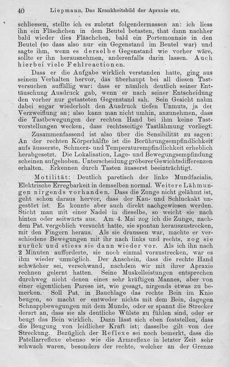 Das Krankheitsbild der Apaxie ("motorischen Asymbolie") auf Grund eines Falles von einseitiger Arpaxie