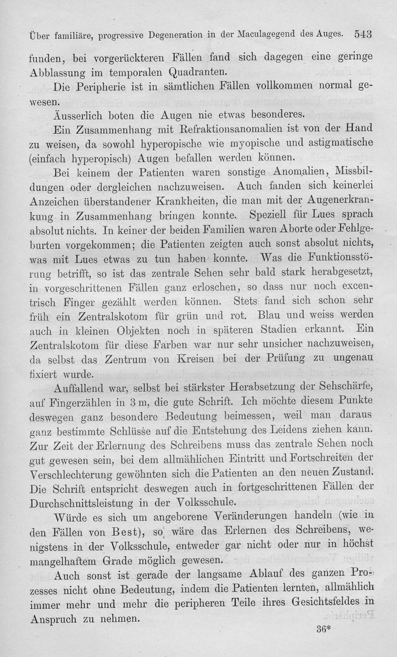 Über familiäre, progressive Degeneration in der Maculagegend des Auges